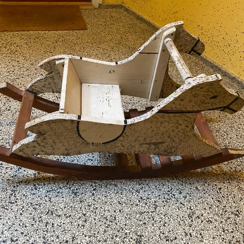 Sød lille antik barnevogn- lavet af lyst, buet træ eller rattan