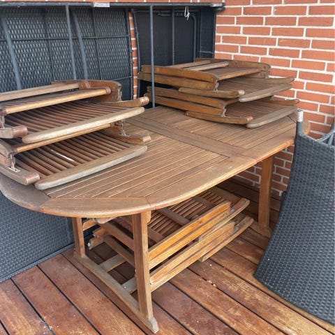 Obs: Den ene stol kan ikke klappes helt sammen, men det kan muligvis repareres ved at udskifte en skrue.