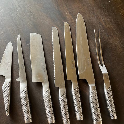 Global knivsæt med magnetisk knivskinne og elektrisk knivsliber
