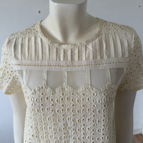 Sea New York kjole med 3/4 ærmer og rund hals. Kjolen har et smukt broderede detaljer over det hele. Taljen er elastisk, hvilket giver en behagelig pasform. Perfekt til både hverdag og festlige lejligheder. Brugt enkelte gange, fejler intet. US str 6, svarer til M. Tjek mål på billeder.