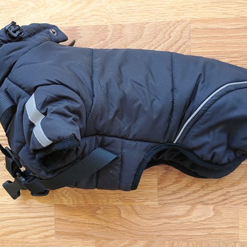 Jakken er foret med blødt og varmt polyesterfor, der er skånsomt for lang pels.
