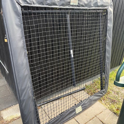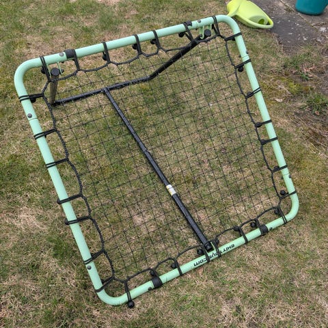 Rebounder velegnet til træning af skud og afleveringer i haven eller på græsplænen. Justeringen bøvler, så der skal måske en skrue til så højdejusteringen fungerer. Stellet består af rør med samlinger og justerbare beslag, og nettet er fastgjort hele vejen rundt på rammen. Egnet til udendørs brug til f.eks. børne- og ungdomsfodboldtræning. Skal tages som beset - svarer ikke på beskeder vedr. denne.