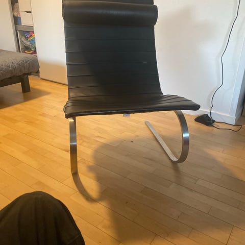 Sort læderstol med metalben. Den er som ny.