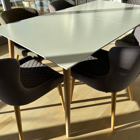 Spisebord sælges også 200kr. per stol med Ikea hynder. Køb alle 6 for 1000kr.