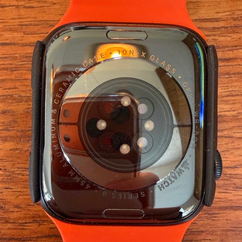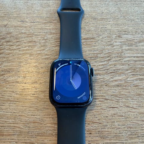 Apple watch serie 8. Har haft panserglas på i alt den tid jeg har haft den. Så har derfor ingen ridser i skærmen.