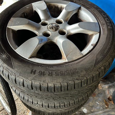 Sælger disse Peugeot fælge med sommerdæk. Dækkene er som nye da de kom på sent sidste år. De billede af mønsteret.