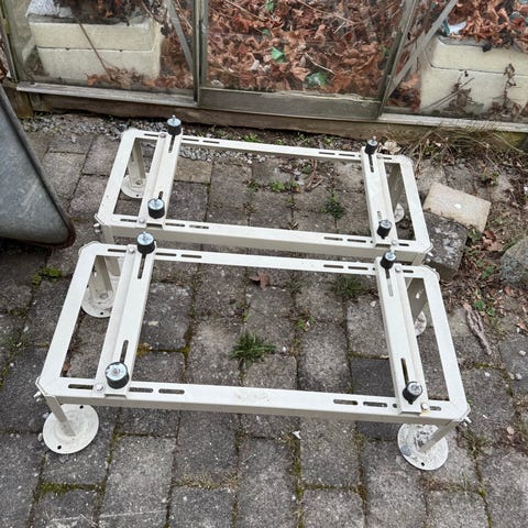 Fejlkøb. Helt nyt. Ikke brugt. Samlet. Nypris med forsendelse 424 kr https://quickparts.dk/gulvstativ-til-varmepumpe-i-galvaniseret-staal-sort/1018748/
