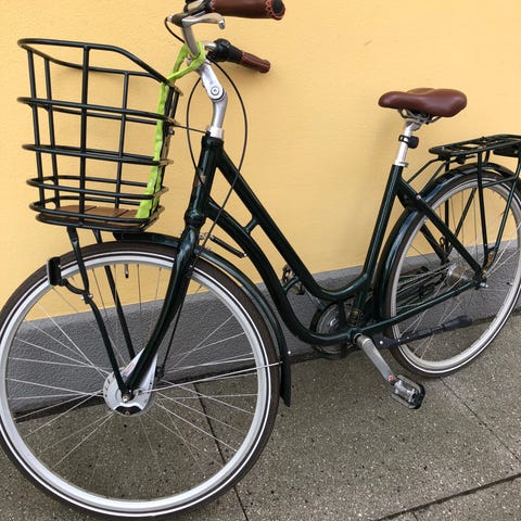 God stang dog med en skærm der skal sættes på og cykelkurv skal monteres.