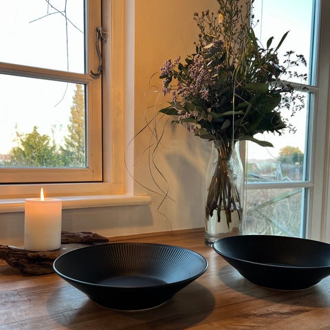 Sælger flot stel fra Royal Copenhagen i sort/hvidt mønster. Sættet indeholder flere skåle, tallerkener, to æggebære, to låg, en kop og en lille skål – se billeder for overblik.