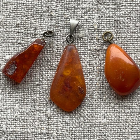 Skønt enkelt buttet Rav hjerte med sølvfarvet øsken