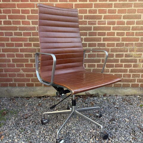 Charles Eames Ea-219 kontorstol i sort læder m/låsbar vippe-mekanisme samt justerbar højde.