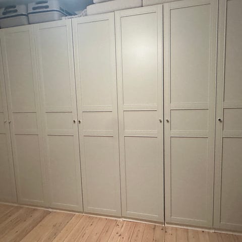 Da jeg skal flytte midt i april, har jeg disse PAX skabe til salg fra IKEA, som jeg ikke kan have med. De er 2,36 M høje og består af to sektioner på 50 cm bred og en på 100 cm bred.