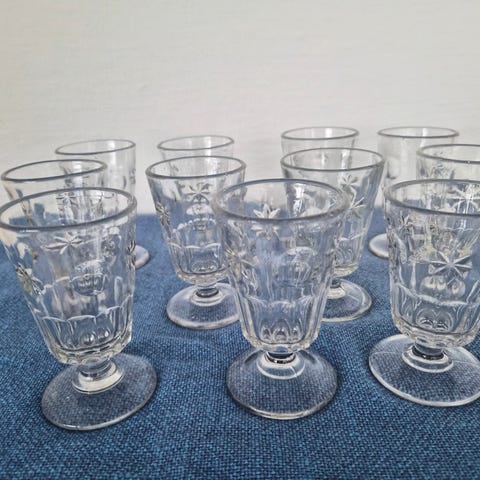 Disse glas er skabt i et klassisk design med en smuk rund kumme og en markant massiv fod. Detaljerigdommen understreges af den dekorative, kugleformede overgang mellem kumme og fod, som giver glasset karakter og en behagelig tyngde. Glassene vidner om solidt håndværk med en godstykkelse på 2 mm og en kugleslebet bund, hvor mærket fra piben er professionelt bortslebet for en glat finish. Med en højde på 7,1 cm og en diameter på 6,1 cm er de ideelle til servering af likør eller små desserter. Et tidløst og robust sæt, der forener elegance med god holdbarhed.