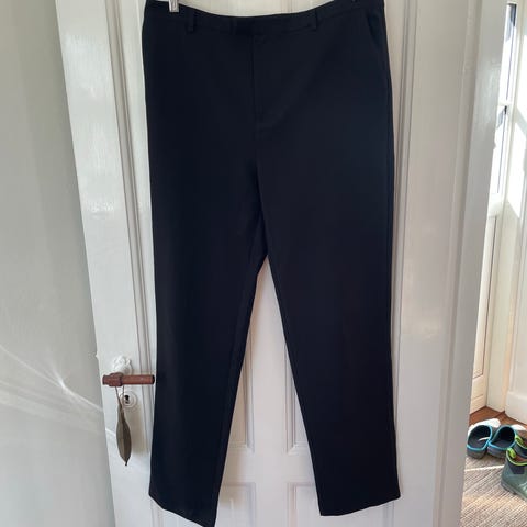 Fragt 40 kr. Lækre bukser i ankellængde, helt nye og ubrugte. God kvalitet af viskose med elastan og nylon. Nypris 700 kr. Sidelængde top til bund 90 cm, indvendig benlængde 66 cm. Virkelig flotte og i en klar blå farve. Stoffet er fast, men med stretch og strammer derfor ikke om maven, så de er super behagelige (perfekt kontortøj). Costa Mani Monkey Pants i "Royal Blue". Dansk mærke.