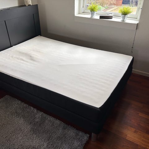Sengen står på metalben. Velegnet som almindelig seng i soveværelse eller gæsteværelse. 140x200 cm. Fra Drømmeland.