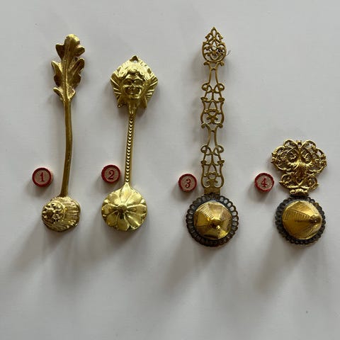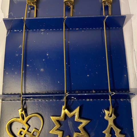 &Tradition messing ophæng pynt til højtider. Sættet består af flere dekorative ophæng i gylden messingfarve med udskårne, ornamenterede former. Velegnet som ophæng på grene, i vinduer eller andre steder i hjemmet i forbindelse med forskellige højtider. Designet som små figurer og redskabslignende former med ring eller krog i den ene ende til ophængning.