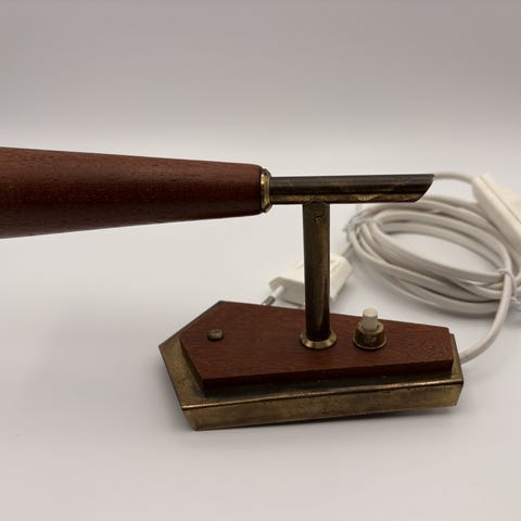 2 smukke og unikke væglamper i messing og mørke træ (teaktræ eller palisander).