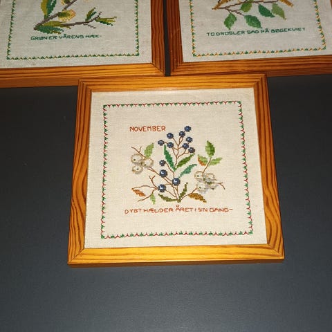Diverse hjemmelavede. indrammede broderier