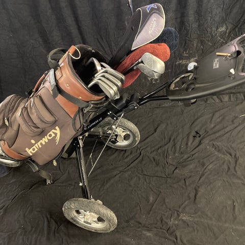 Golf sæt med bag og vogn grå/pink