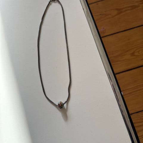 Pandora halskæde til kvinde i sølv med rav vedhæng. Kæden er en sølvslange-kæde med klassisk lås. Vedhænget er formet som et hjerte i rav med sølvophæng og dekorativt sølvmotiv foran. Smykket er udført i sølv som hovedmateriale kombineret med rav som andet materiale og er designet til kvinder.