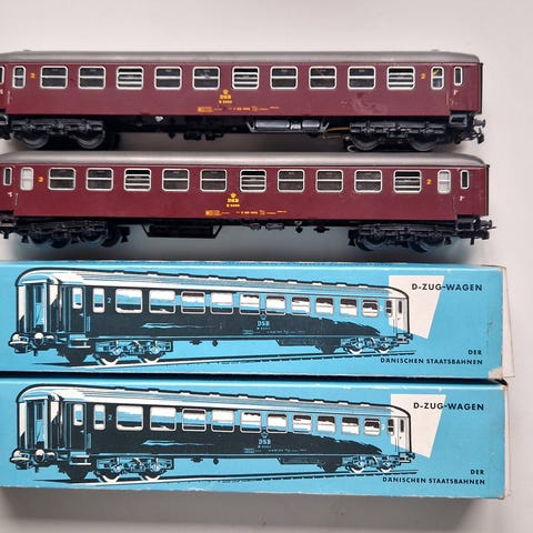 3 X Märklin DB-personvogne #4037. 1960erne. Klassiske og robuste modeller I metal. Pæn stand. Mindre rust forekommer på tage. Originale æsker i ok stand, H0, 1;87