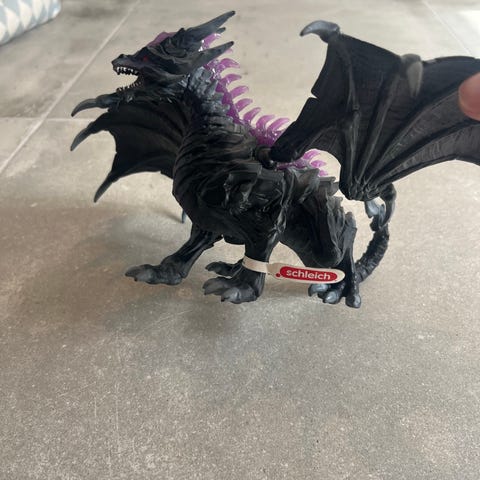 Legetøjsfigur formet som en skorpion i sort og orange plastik. Figuren har bevægelige ben, klosakse og hale, og er udført med detaljerede overflader. Egnet som legetøj eller som samlerfigur til børn eller voksne, der kan lide fantasidyr og krybdyrslignende figurer.