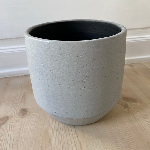 Ydersiden fremstår klar og blank. Originalpris 500 kr ved plantorama. Se lignende krukke her: https://www.jespersplanteskole.dk/emsa-granit-blank-o-43-cm