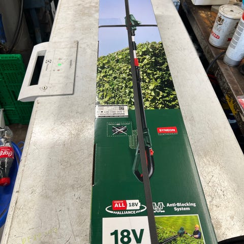 Batteridrevet teleskop hækkeklipper med justerbart skaft. Inkluderer oplader og batteri, som ses på billedet. Velegnet til trimning af hække og buske, også i højden, hvor det lange teleskopskaft giver ekstra rækkevidde. Hækkeklipperen har skulderrem for bedre støtte under brug.