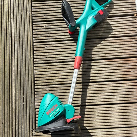 Græstrimmer i grøn farve. Velegnet til trimning af græskanter og mindre områder i haven. Leveres med trimmerhoved og ekstra trimmertråd, som ses på billederne. Egnet til almindeligt havebrug omkring bede, kanter og langs fliser.