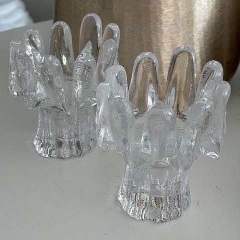 Sæt med to fyrfadsstager i klar glas fra Kosta Boda Sunflower.