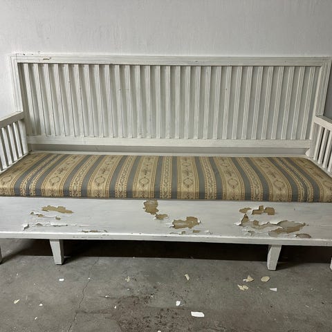 Gl svensk slagbænk med udtræksskuffe. Byd gerne.