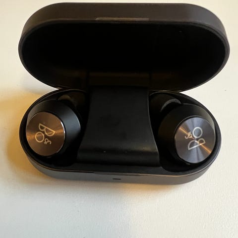 Bang & Olufsen Beoplay EQ trådløse in-ear høretelefoner i rose gold med matchende opladeetui. Modellen er et sæt true wireless øretelefoner, der forbindes via bluetooth. Etuiet fungerer som ladestation og har indbygget batteri (kapacitet 340 mAh ifølge mærkningen på bunden). Høretelefonerne er velegnede til brug med smartphone, tablet eller andre enheder med bluetooth-forbindelse.