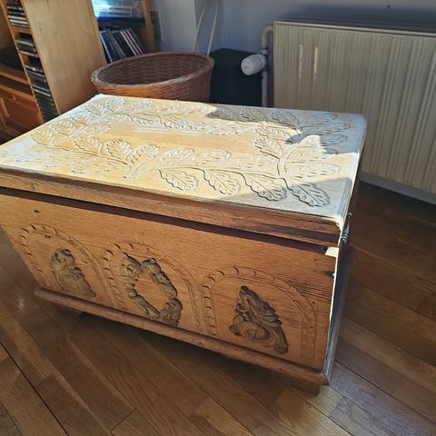 Træ kiste med metalbeslag