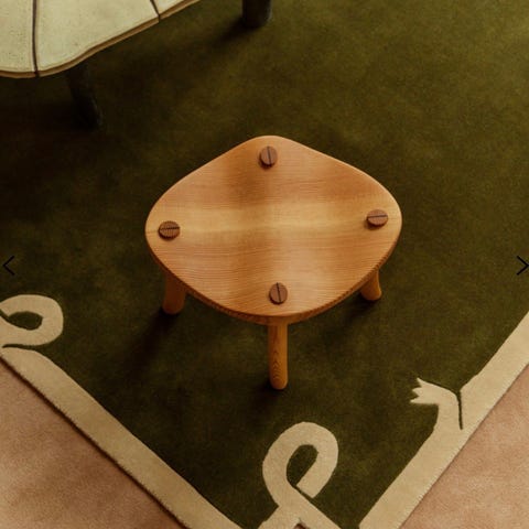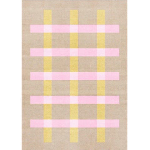Matias Moellenbach jute-tæppe med ternet mønster i beige og gule nuancer.