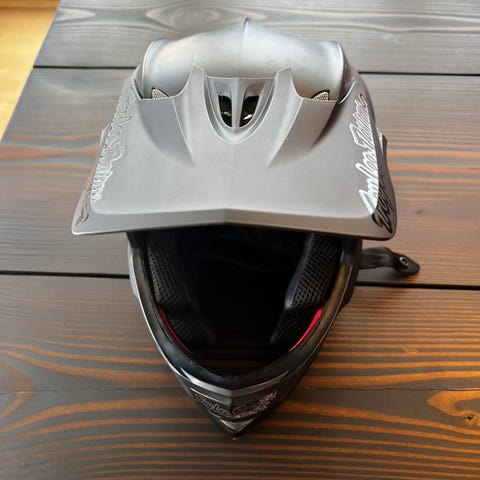 O’Neal fullface hjelm i grøn og sort med grafisk print. Hjelmen har fast skygge og fuld ansigtsbeskyttelse. Indvendig polstring og justerbar hagerem med kliklås. Velegnet til fx BMX, downhill eller anden cykling, hvor der ønskes ekstra hoved- og ansigtsbeskyttelse. Størrelse er ikke angivet, men hjelmen ses brugt af et barn på billederne.