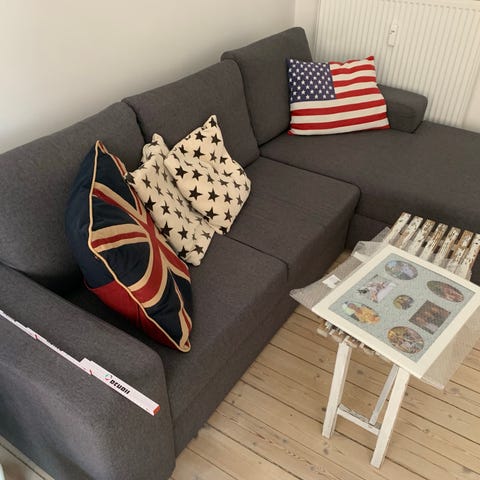 Sofaen har sovefunktion og er nem at slå ud, hvilket gør den perfekt til overnattende gæster. Der er praktisk opbevaring både under den ene del af sofaen samt i armlænet – ideelt til tæpper, puder eller sengetøj.