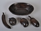 Håndskåret Træ Fad Med 4 Frugter, Håndskåret Træ, Fad Og 4 Frugter I Håndskåret Træ