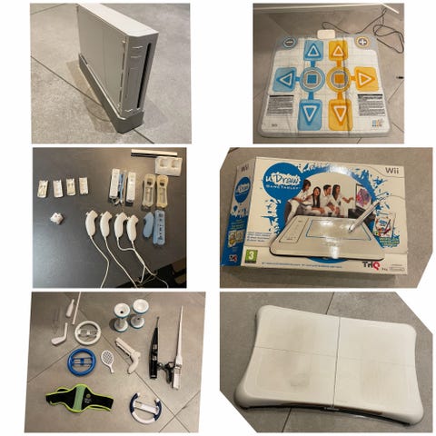 Sættet omfatter en Nintendo Wii konsol med strømforsyning og AV-kabel, flere Wii-fjernbetjeninger samt sensorbar. Der medfølger et Wii Fit Balance Board med spillet Wii Fit Plus. Derudover ses forskellige sports- og danse spil til Wii, blandt andet titler i kategorierne sport, fitness og dans.