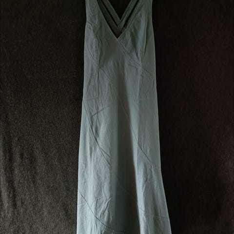 Dejlig hørkjole med lommer. Fine perlemors knapper.
