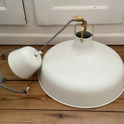 Loftlampe udført i metal med 4 justerbare spots og hvide lampeskærme. Kan vinkles efter behov. E14 4xMax 40W