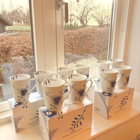 Sælger seks Blå Mega Riflet krus fra Royal Copenhagen samlet for 1.250 kr.