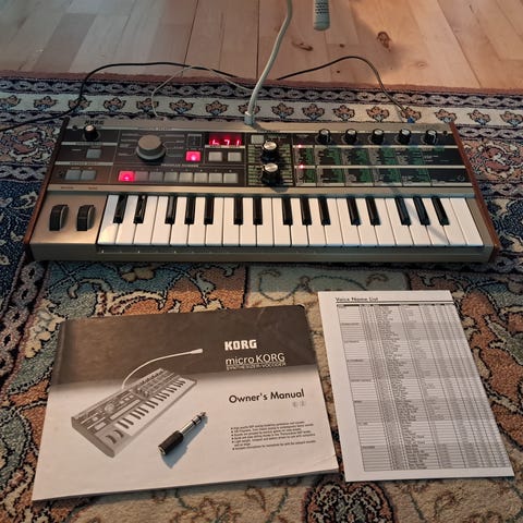 9v strømforsyning og medfølgende vocoder microfon medfølger ikke.