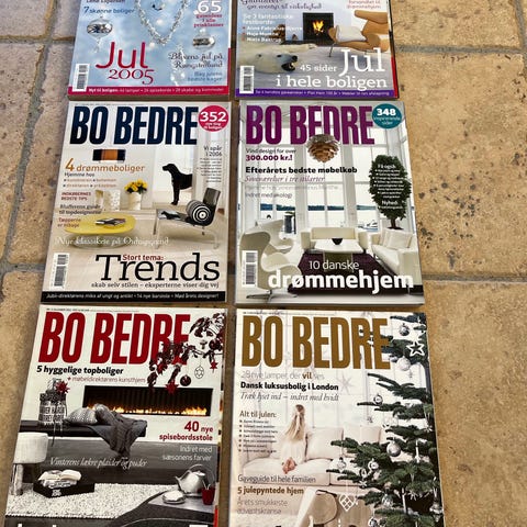 Bo Bedre boligmagasiner samling. Magasinerne omhandler boligindretning, have, arkitektur, design og livsstil.