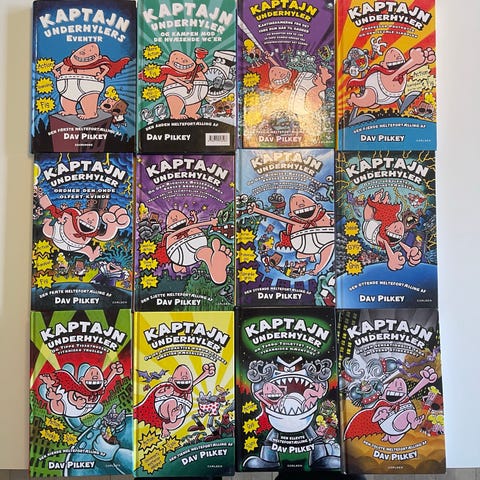 Dav Pilkey Hundemand bogsæt med 7 bind. Serien består af illustrerede børnebøger/tegnede romaner om figuren Hundemand. Bøgerne er i farver og indbundet som hardbacks. Velegnet til børn, der læser humoristiske og tegneserieinspirerede bøger.