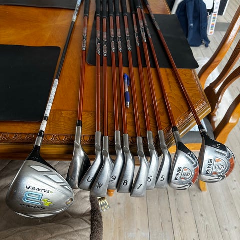 Sælger dette Ping G20 jernsæt. Jernene i fin stand. Sættet går fra 5-9, og har grafitskafter med regular flex. Længden og lie er standart, og jernene er til højrehåndet golfspillere.