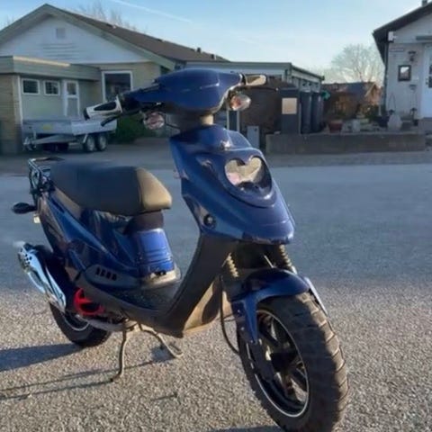 Yamaha scooter i sort. Modellen har trinbræt, dobbelt forlygte, spejle og bagagebærer bag sædet. Scooteren er udstyret med fodstøtte/centralstøtteben og baglygte med integreret bremselys. 45 km 4 takt scooter tysk uden papir, men med købs kvittering. Alt virker, kun en nøgle, trænger til en kærlig hånd. Byd