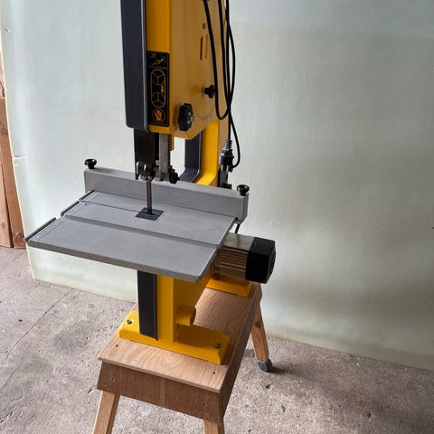 Maskinen er monteret på et skinnesystem/stativ, som giver mulighed for længere emner og stabilt arbejde. Velegnet til fx listearbejde, paneler og andre tømrer- og snedkeropgaver, hvor der er behov for nøjagtige vinkelsnit og gentagende længder.
