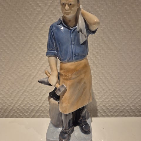 Royal Copenhagen figur 4502 porcelænsfigur af smed ved ambolt. Figuren er udført i glaseret porcelæn i blå, beige og grå nuancer.