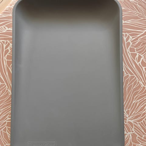 Leander puslepude i grå / cappuccino. Rektangulær puslepude med let forhøjede, afrundede kanter. Overfladen er glat og kan tørres af, hvilket gør den egnet til daglig pusling og pleje af spædbørn og småbørn på puslebord eller anden plan overflade.