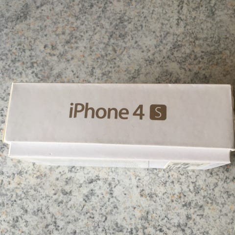 Apple iPhone 4S smartphone i sort. Klassisk model med glasbagside og metalramme. Enheden har hjemknap på forsiden og kamera med blitz på bagsiden. Leveres med original æske og opladerkabel efter billederne. Velegnet som reservetelefon, til simple daglige opgaver eller som samlerobjekt for ældre Apple-enheder.